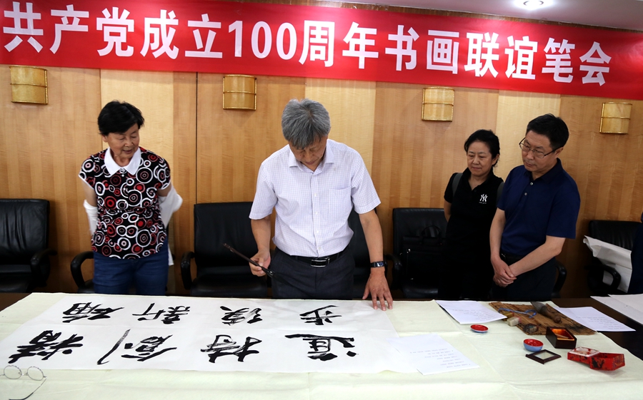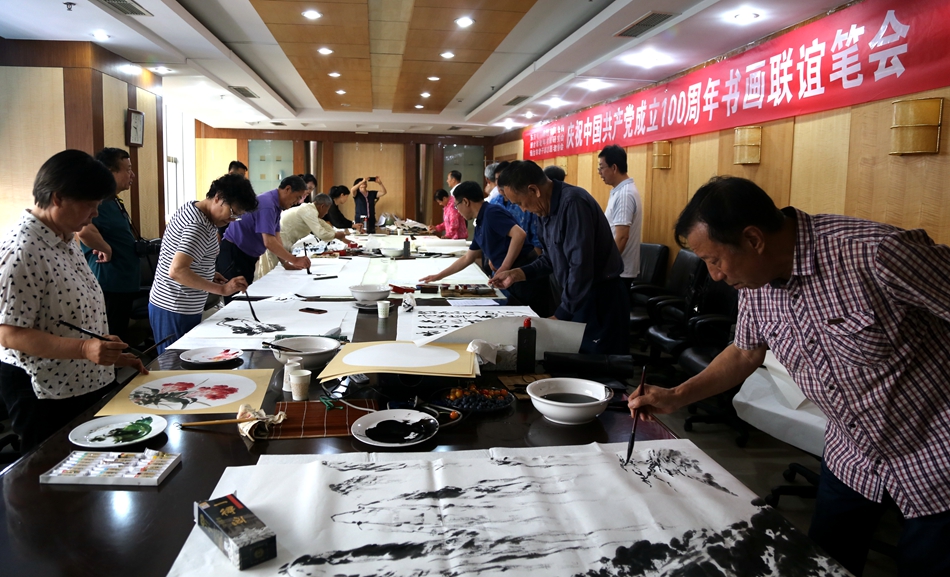 为庆祝中国共产党成立100周年,回顾党的奋斗历程,歌颂美好新时代,助力公司企业文化建设。6月24日,贵阳佰汇声光舞美技术有限公司、烟台市老年书画研究会、烟台市老干部志愿者协会共同举办“庆祝中国共产党成立100周年联谊书画笔会”。本次活动共有18位县处级退休老干部书画家参加。